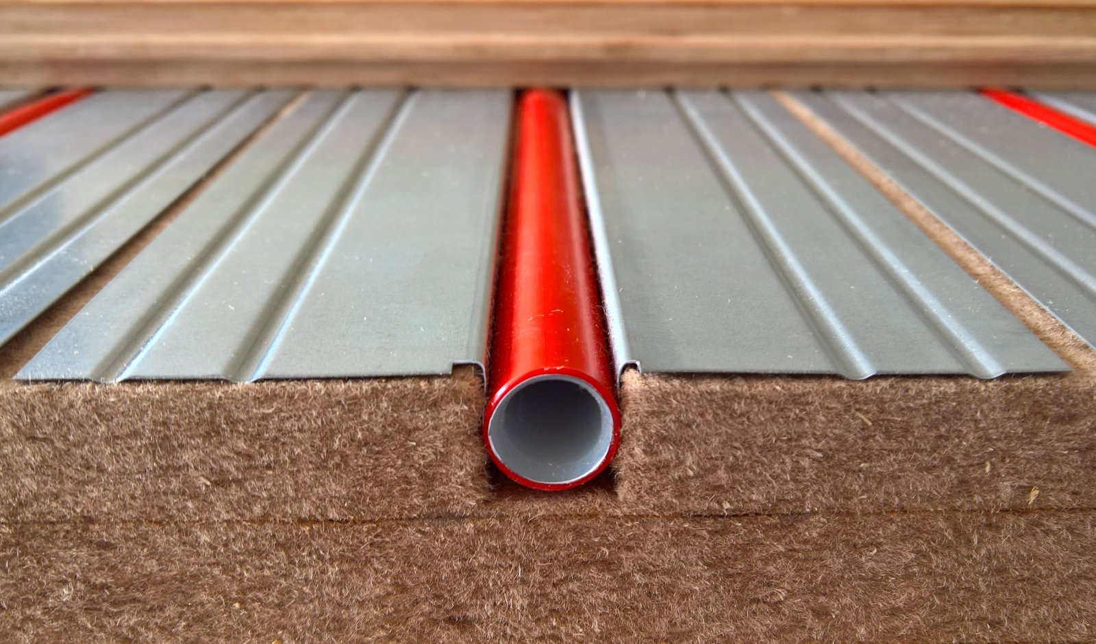 WEM underfloor heating can be installed quickly and easily in dry construction. If it is necessary to fill and level the unfinished floor, the CEMWOOD fill is suitable, which is covered with a thin wood fibre board as a clean layer. The softwood fibre installation panels are then laid on top of this and fitted with the thermally conductive plates. Then the pipe is inserted into the receptacles. Finally, the system is either covered with a wooden floor at the inserted wooden strips. When using tiles, a dry screed is laid below.